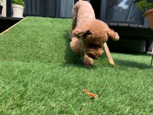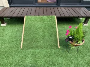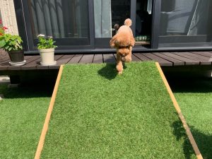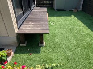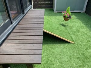 「僕がリビングから外に出る窓には、ウッドデッキがあってさ~芝生までの段差が約40㎝