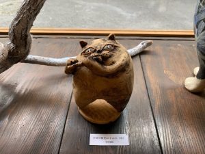 ギャラリーに入ってすぐ、陶器でできたユニークな猫が目に飛び込んできました。