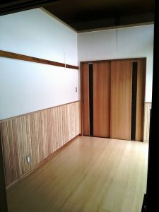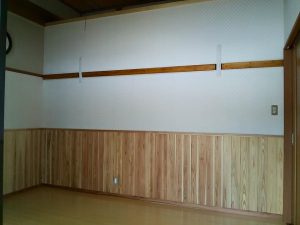 ●吉野杉の腰板壁〈クロス紙とのコラボ〉