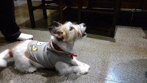 閉店後のお店に打ち合わせに伺うと、なんと!ジャックラッセルテリアの、あずきちゃん(写真)11歳