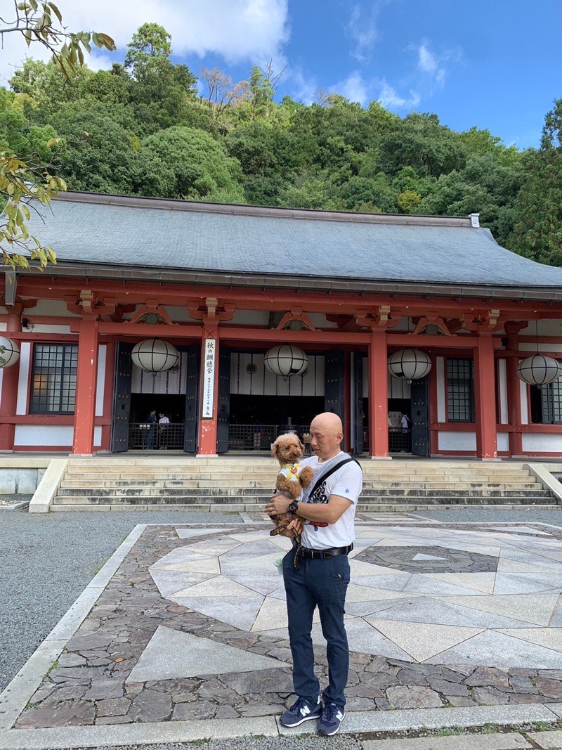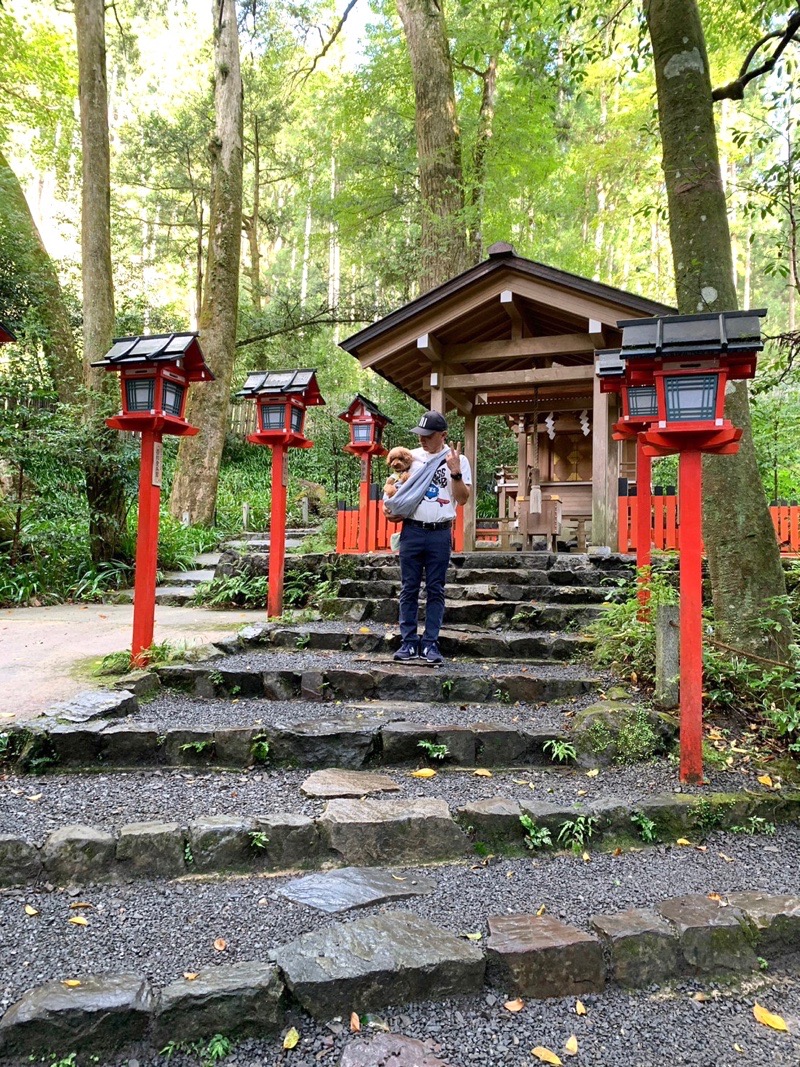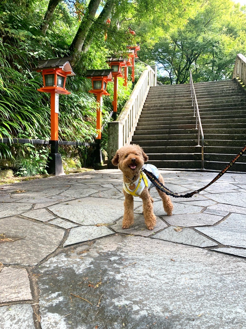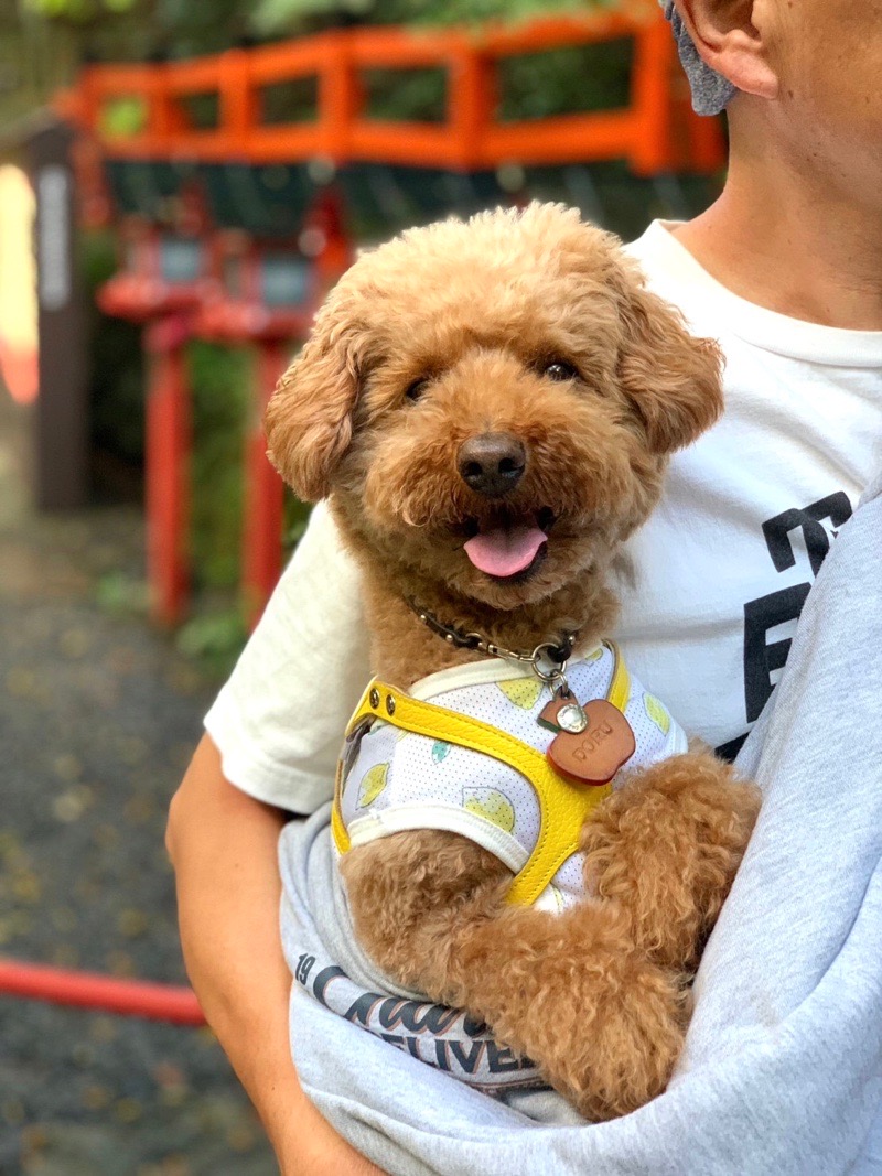 雨で足元べとべとだったので…ドルちゃんは「スリング」にいれ抱いて参拝しました。過保護です😿