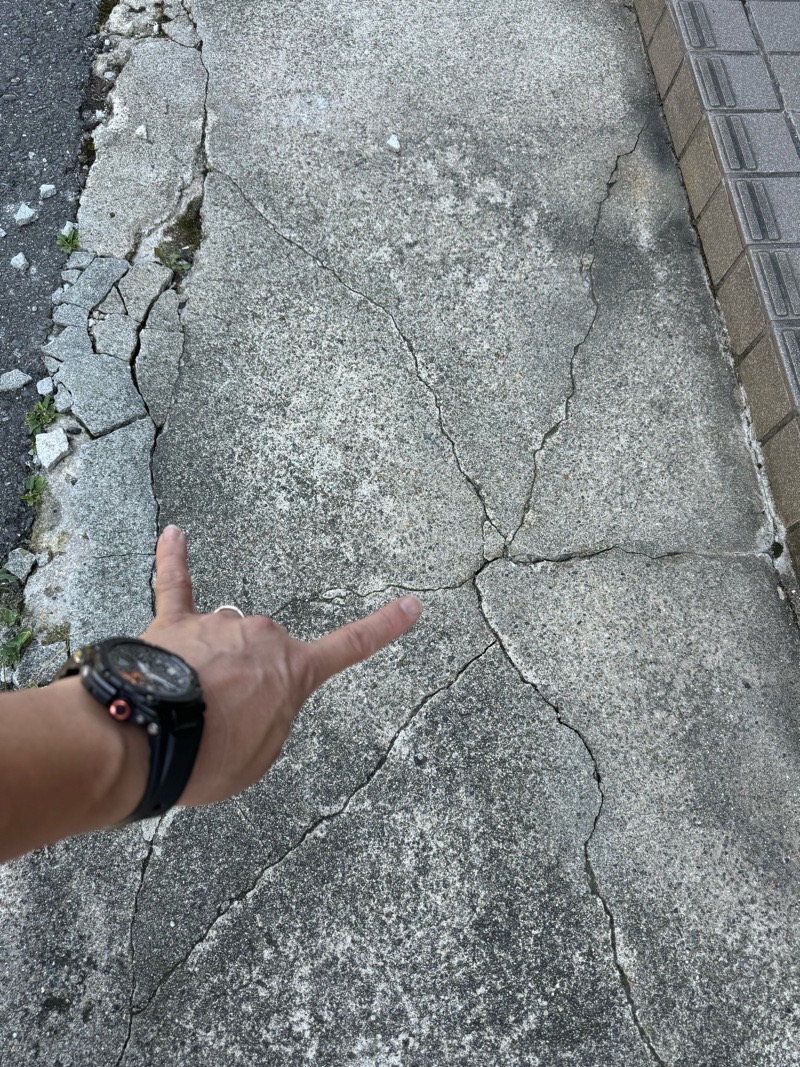 道路と面する部分の土間が バリバリでした おそらく鉄筋やメッシュは入ってないと想像します