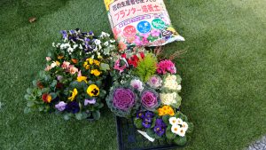 葉牡丹 パンジー ゴールドクレスト カルーナ シクラメン スイートアリッサム ロングアイビー