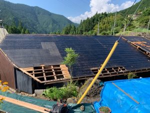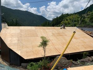こちらは奈良県吉野郡のI様邸。古くなった屋根材を撤去し下地材から施工をしました。 標高が600m~700m