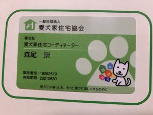 「愛犬家住宅コーディネ―タ―」に認定して頂きました。 ヤッター!
