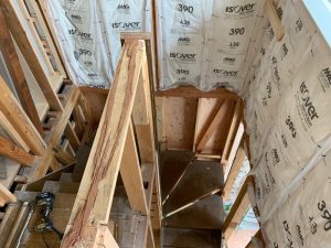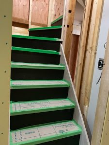 新しい階段を、周り階段の部分より取り付けていきます。