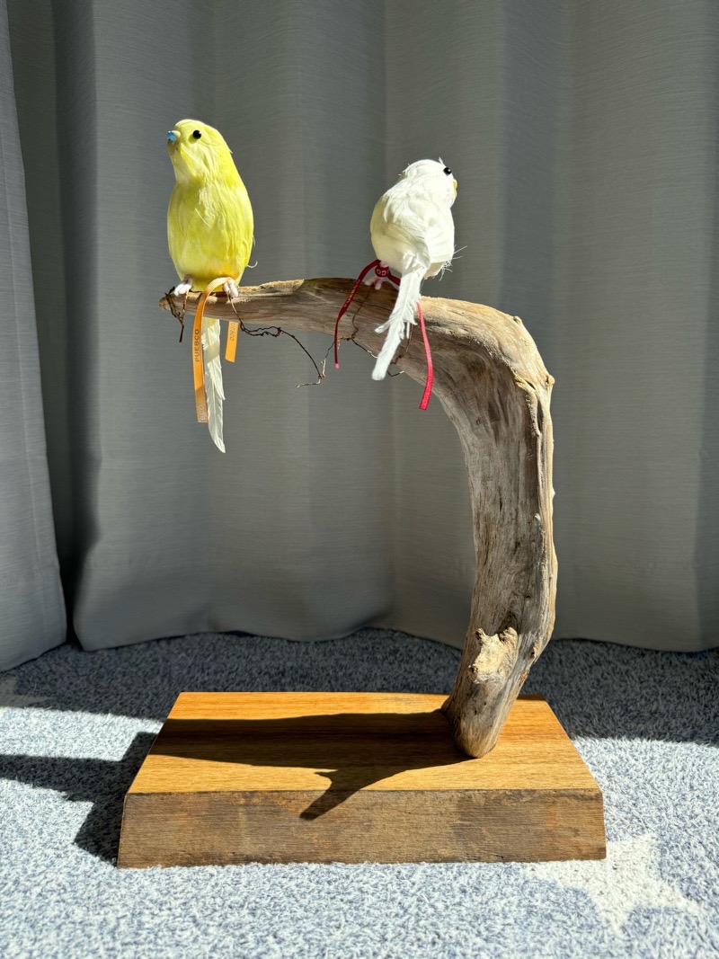 それならこれはどうだ!と製作したのが 古木 流木を 使った 鳥のパーチ 止まり木のオブジェです!!