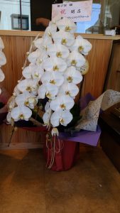私、森尾工務店からも開店祝いの、胡蝶蘭を贈らせて頂きました。 お花は、奈良県橿原市の「花ごころ」さんでお願いしました。
