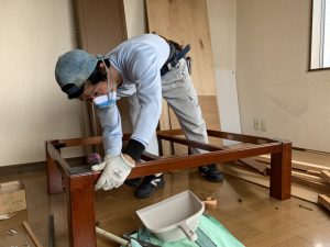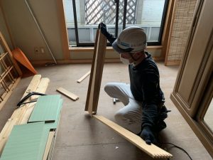 二級建築大工技能士である嶋岡君が丁寧に作業を行っている様子です。
