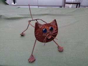 T様邸の玄関ポスト横に、歴史を感じる一体のオブジェを発見!間違いない愛猫家のお宅であります。