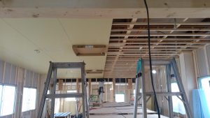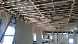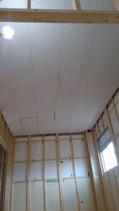 今週一週間は、天井の仕上げ作業とクロス紙を貼る前の下地作業が中心に。