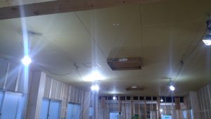 奈良県橿原市公民館改修工事~天井材が施工されました。