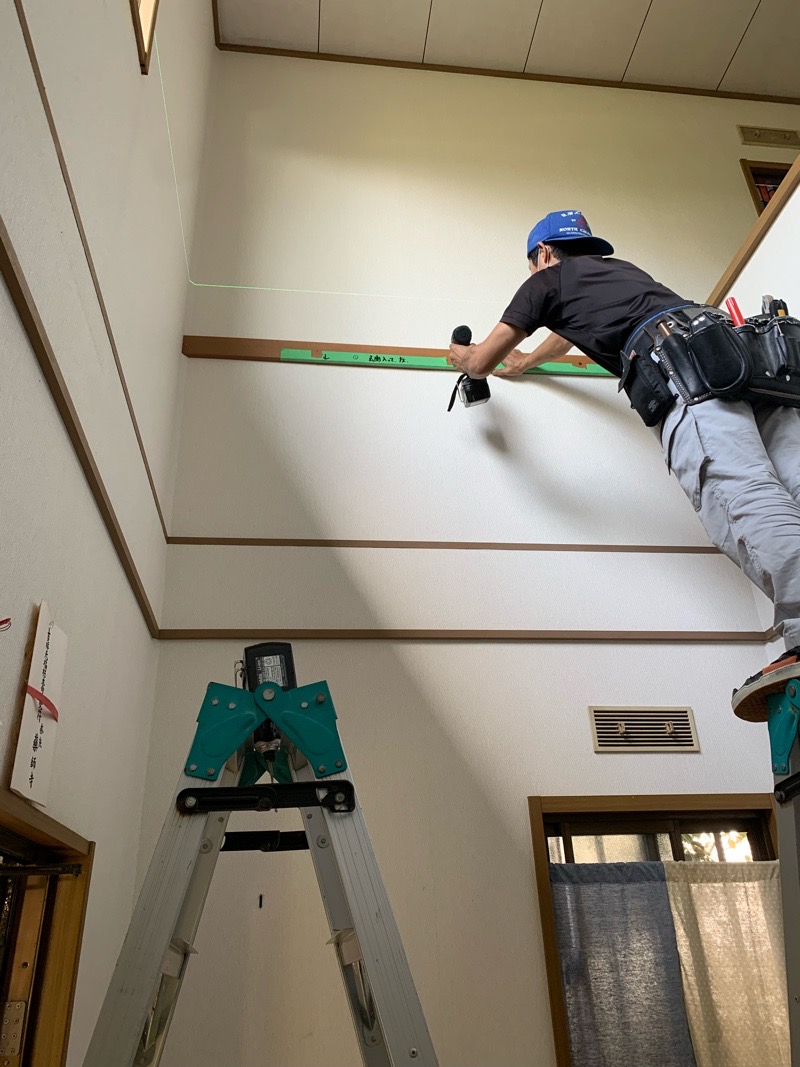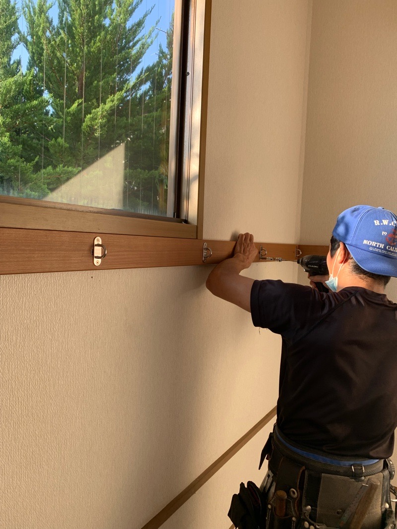 あらかじめ採寸した寸法に化粧ベース材を取り付け。