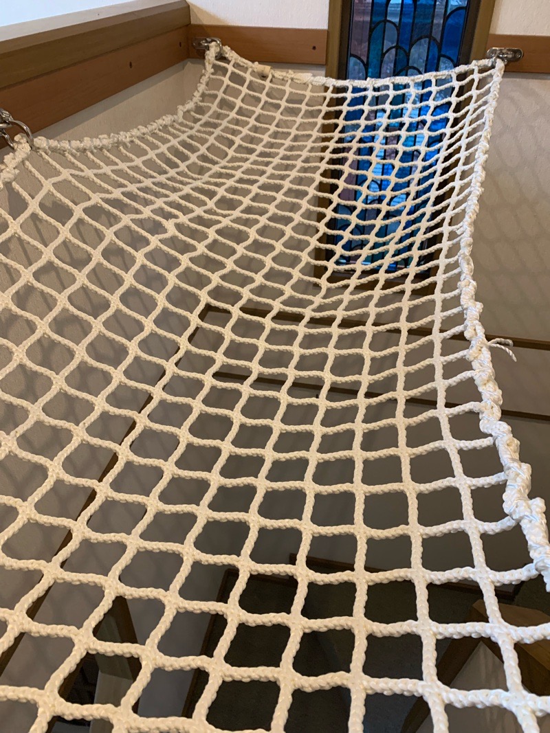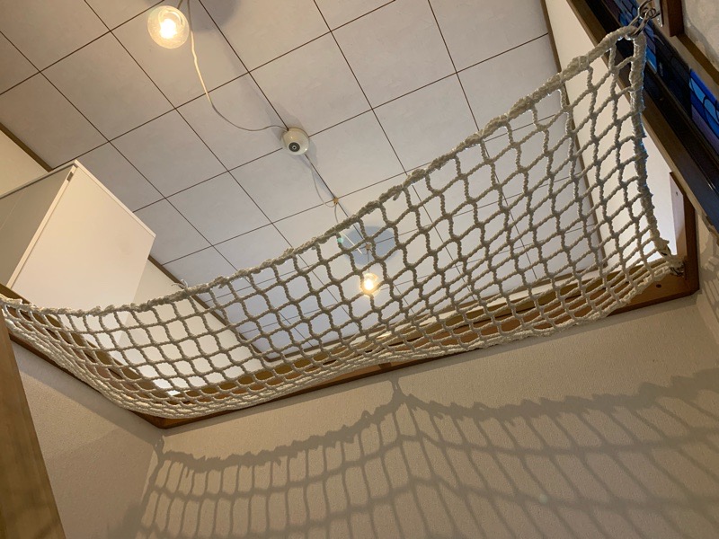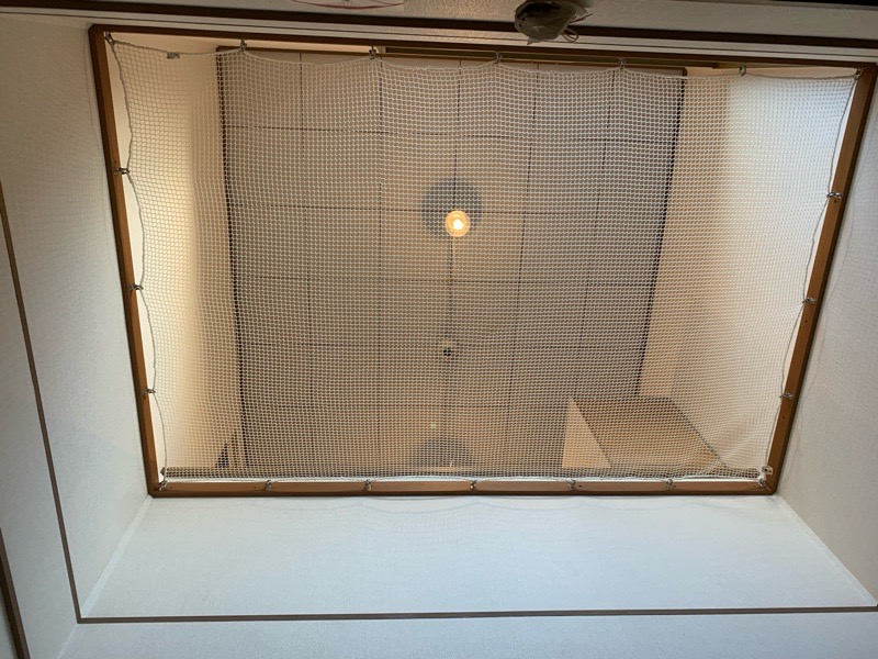 玄関上には、目の細かい「猫落下防止ネット」を設置いました。