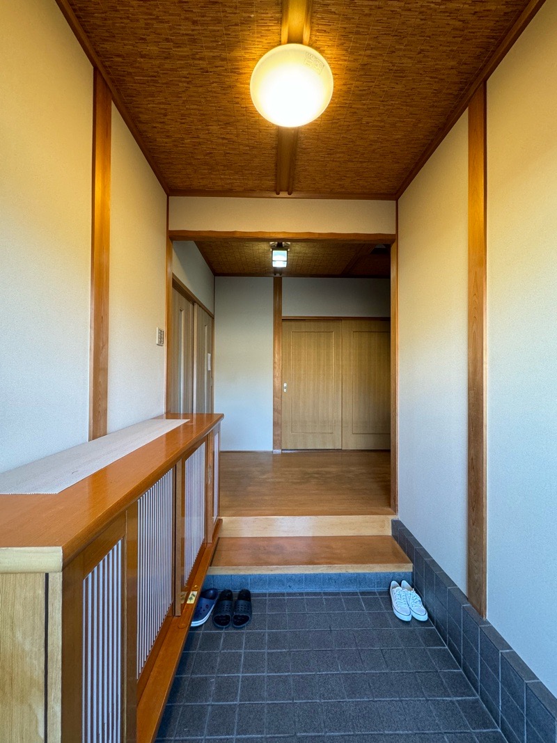 床は・・タイル土間から 式台があり 上がり框がある 二段式 その真上には「うずくり化粧の鴨居」