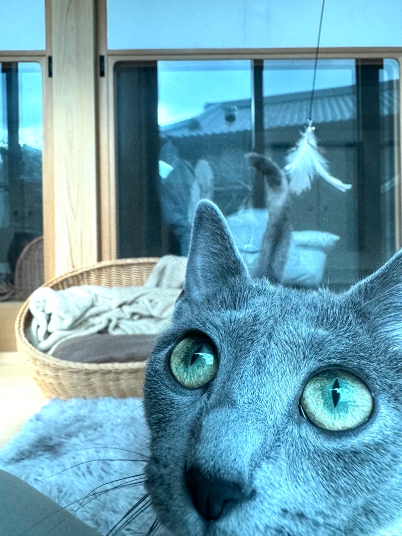 ほんとに目が綺麗な「ロシアンブルー」なんです✨ こんな近くで見るのも初めて!!