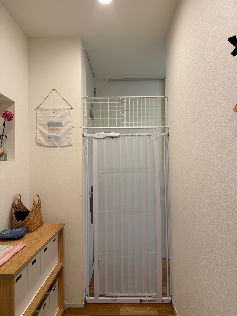 猫の成長に合わせて上部の空間に「つっぱり棒」で柵を延長