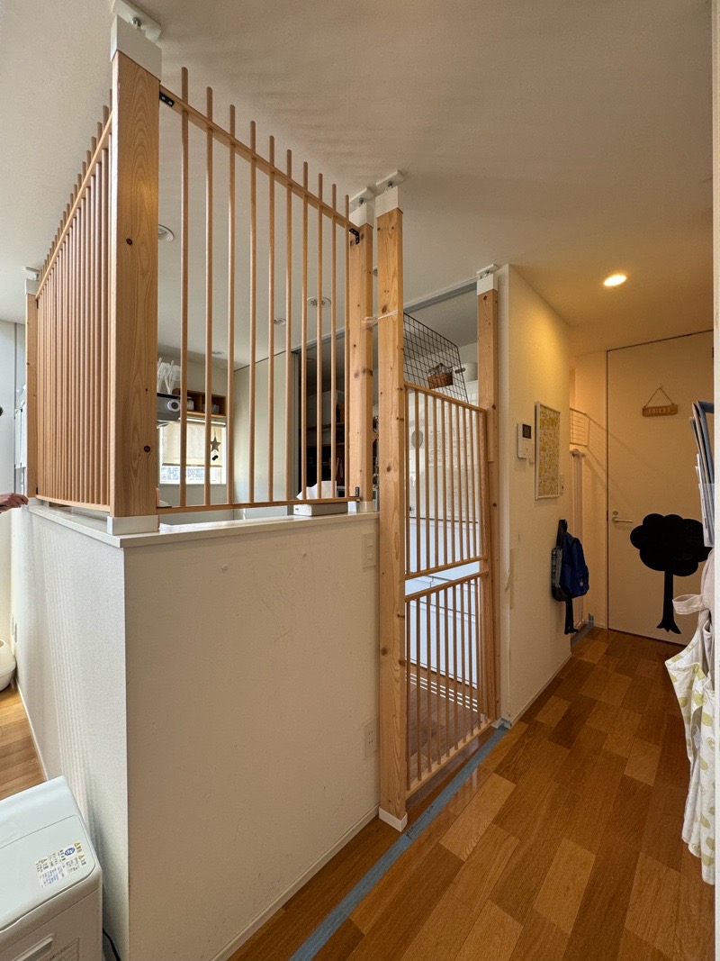 突っ張金具を使い ご主人さまがDIYで作ったという「侵入防止扉」です