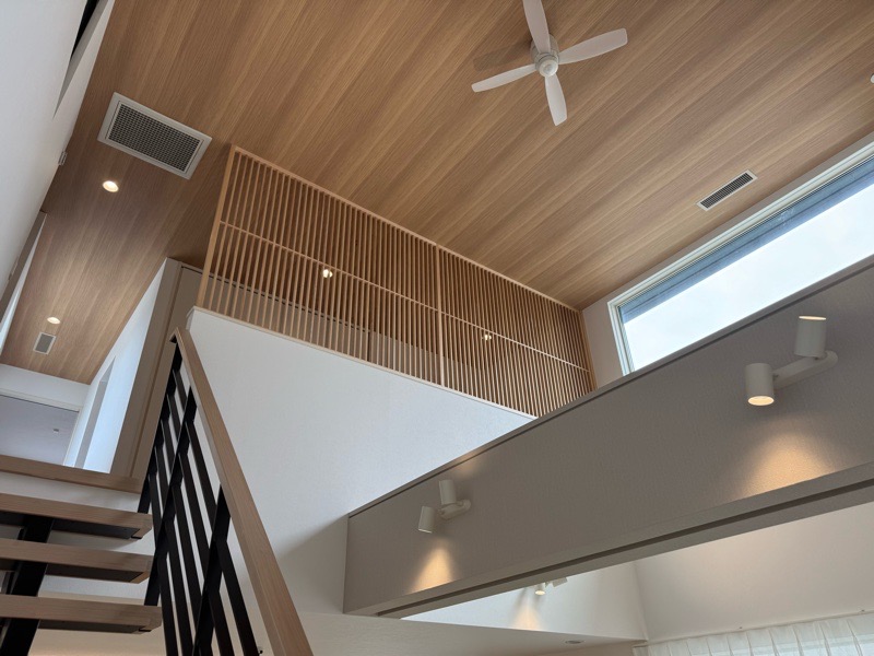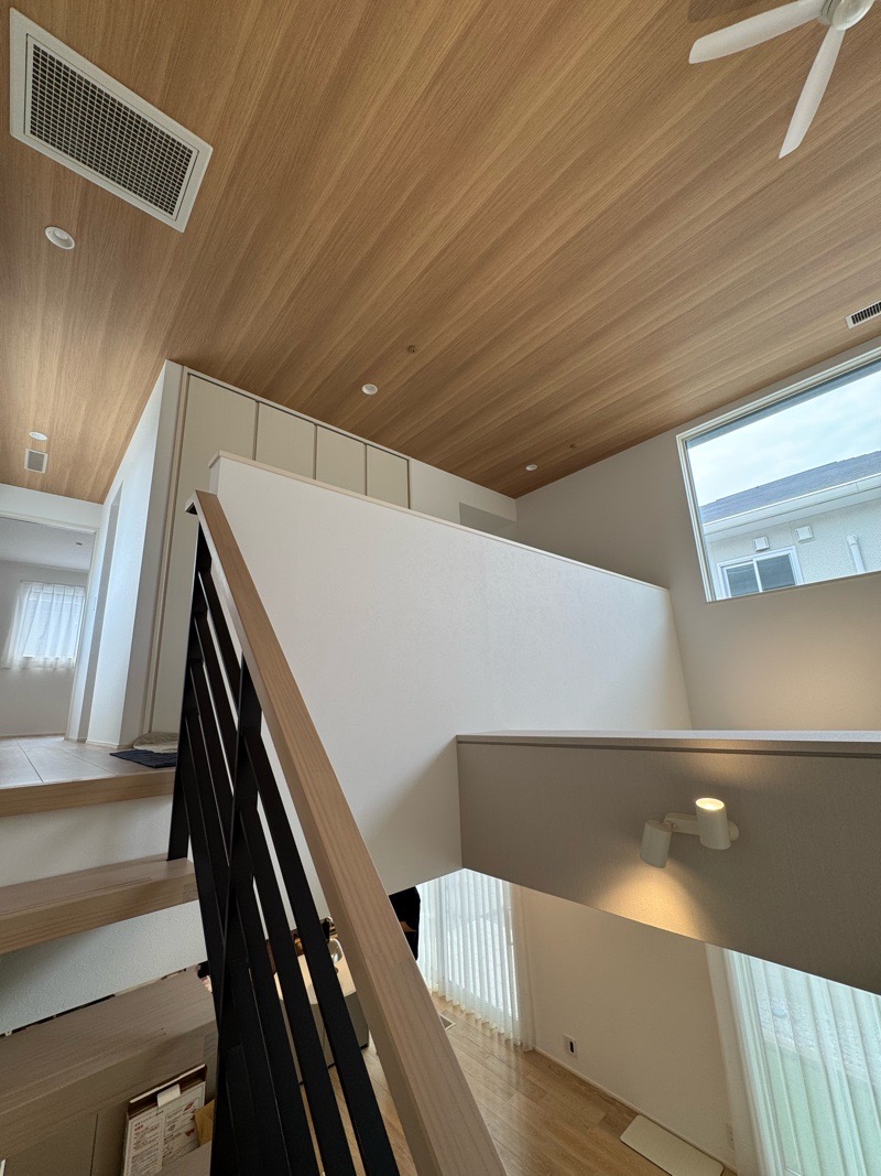 二階のホールから一階リビングを見渡せる開放的な室内空間 とっても素敵です✨