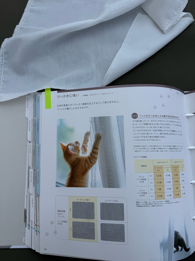 今回、新居をご購入の猫オーナー様より「ひっかきに強いレースカーテンはない?」と