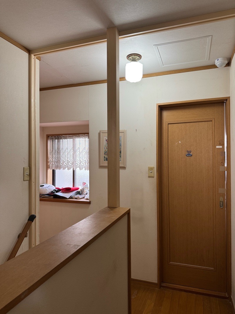階段上部、二階ホールは吹き抜けとなっており、手摺上段から「滑って転落しないか?」が心配の種だったようです