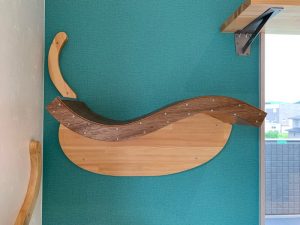 柔らかい猫の体がピッタリ吸い付くような「wave」ウェ~ブステップに、ワンニャンリフォーム森尾工務店