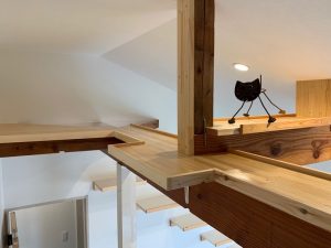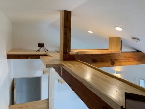 そして、ロフトより上のスペースは、以前、天井裏で隠れていた部分でしたが、新しい天井を勾配天井に