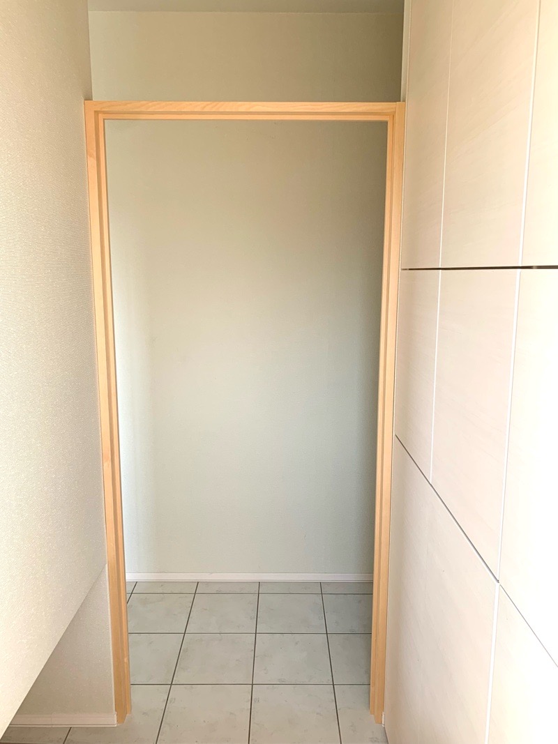 袖壁反対側には家人のシューズクローク部。 こちらは片開きのドア設置します。高さ2000㎜