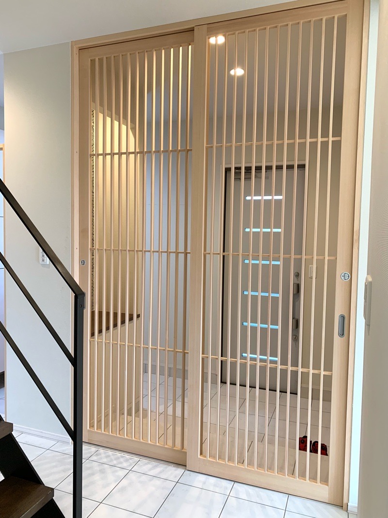 猫の脱走防止扉とはいえ、お家のデザインを損なうことなく上品な仕上がりにオーナー様も我々も大満足の