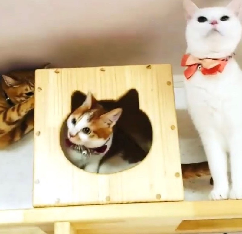 こちらも、実際ねこ達の遊ぶ様子をご覧くださいませ(オーナー様よりお写真いただきました)