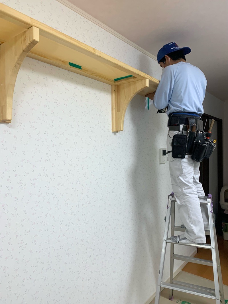 事前に採寸→加工→仕上げた部材を取り付けていきます。現場作業はほぼ一日で完成いたします