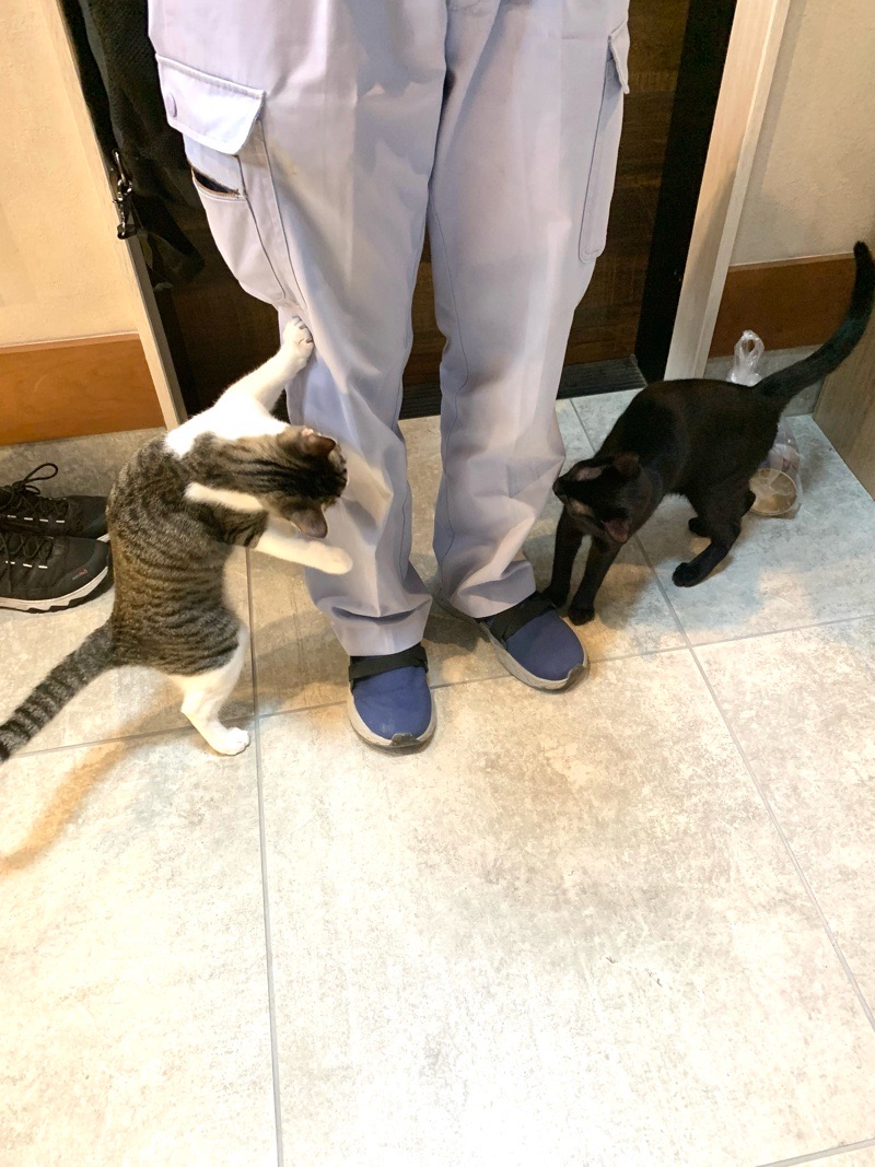 こちらの二匹は、隠れもせずガンガン点検してくれました。「可愛すぎます」