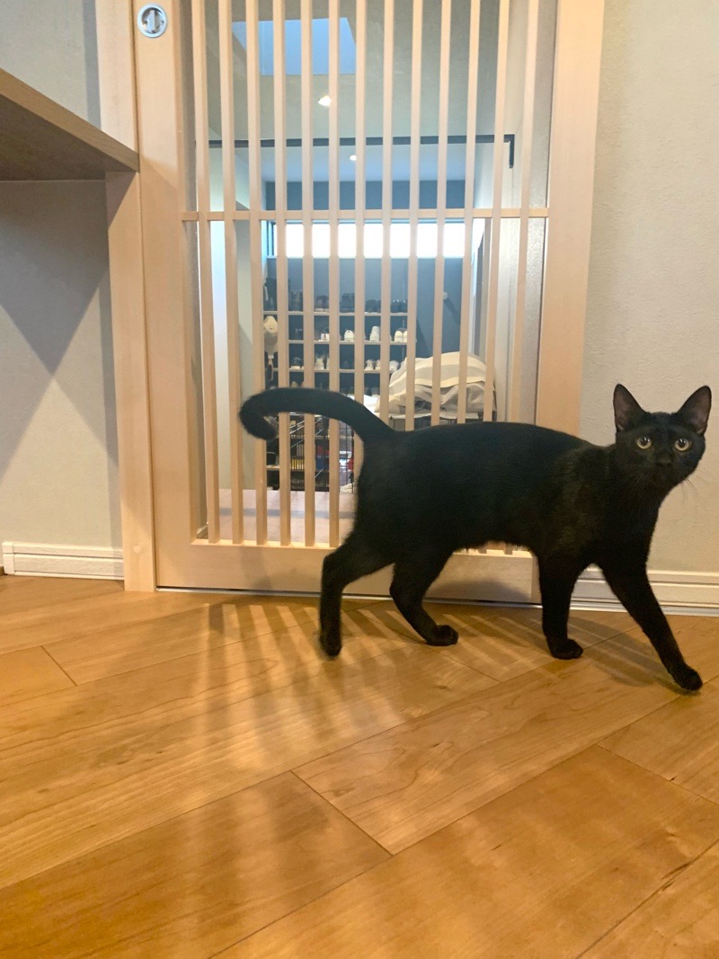 帰宅時!玄関ドアを開けても、格子戸の向こう側に猫たちがいるので安心です✨