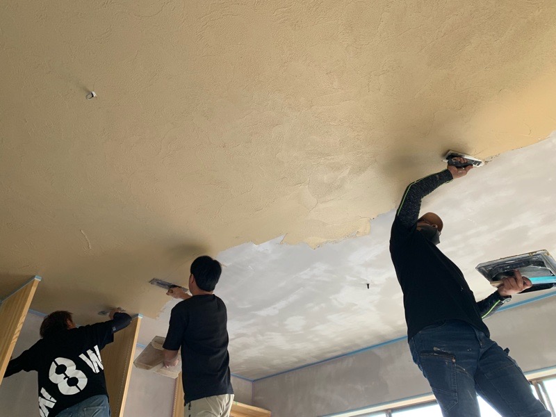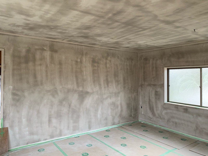 こちらのお部屋の天井と壁には…今、噂の100%自然素材の塗壁材「深呼吸Ⓡ」を採用していただきました。