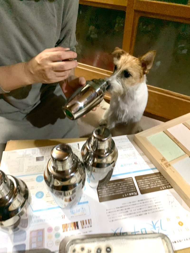 *実験にジャックラッセルのわんこ君にも協力してもらった様子が下の写真です。