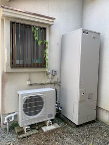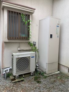 十数年使ってこられた、エコキュートの機械。 エコキュートとは、家庭の照明・台所の調理機材・