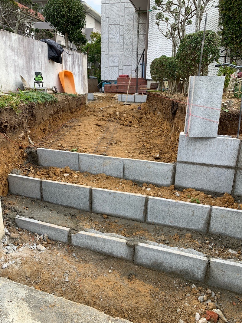 土間はもちろん、土止めの為に新しいブロックを積まなくてはいけません。