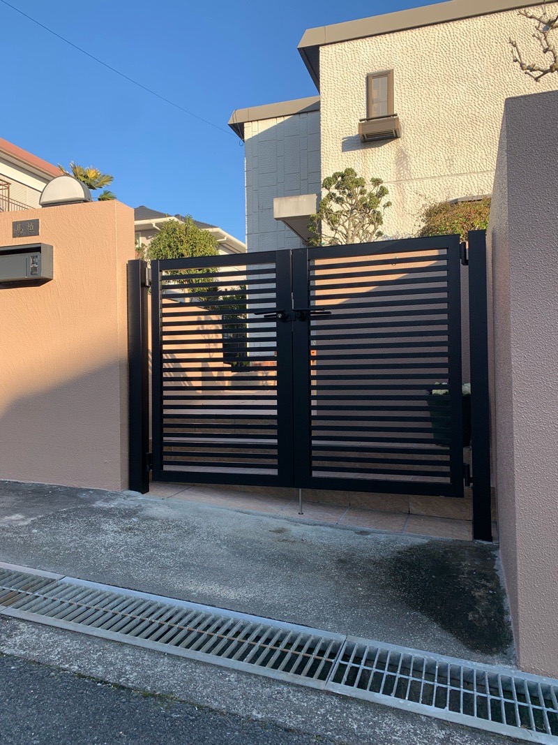 新しい門扉は「ブラック色」を選ばれました。 しまって見えます。