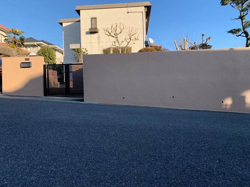 元々あったコンクリート塀には、左官屋さんにカチオンをツラ直しに塗って頂き塗装仕上げです。