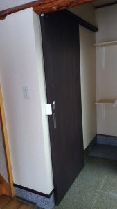 入口ドアの位置を移動。既存の柱が動かせないため→LIXIL製のアウトセット引き戸を採用。