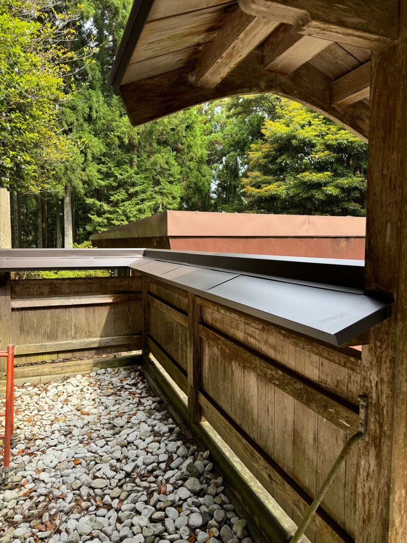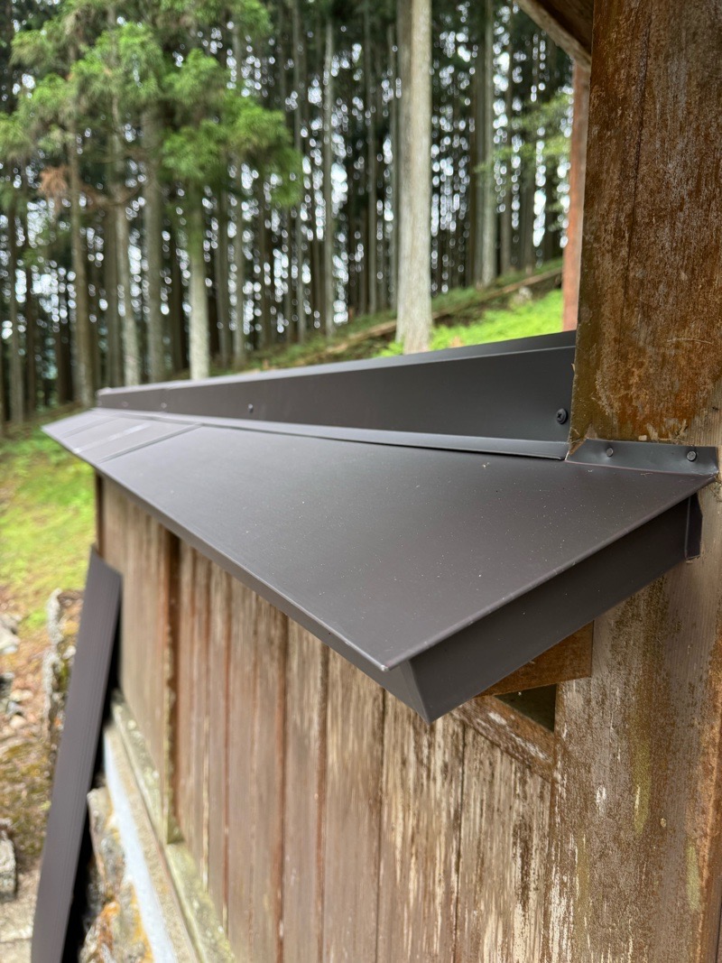 ↓銅板のみ綺麗にはがし盗まれていました。(幸い・・黒い紙で雨の進入を防げてました)
