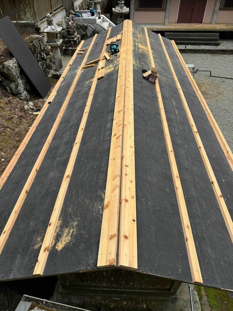 総代様たちとご相談う上・・新たに銅板では葺かず、安価なガルバリウム鋼板波板をはるため