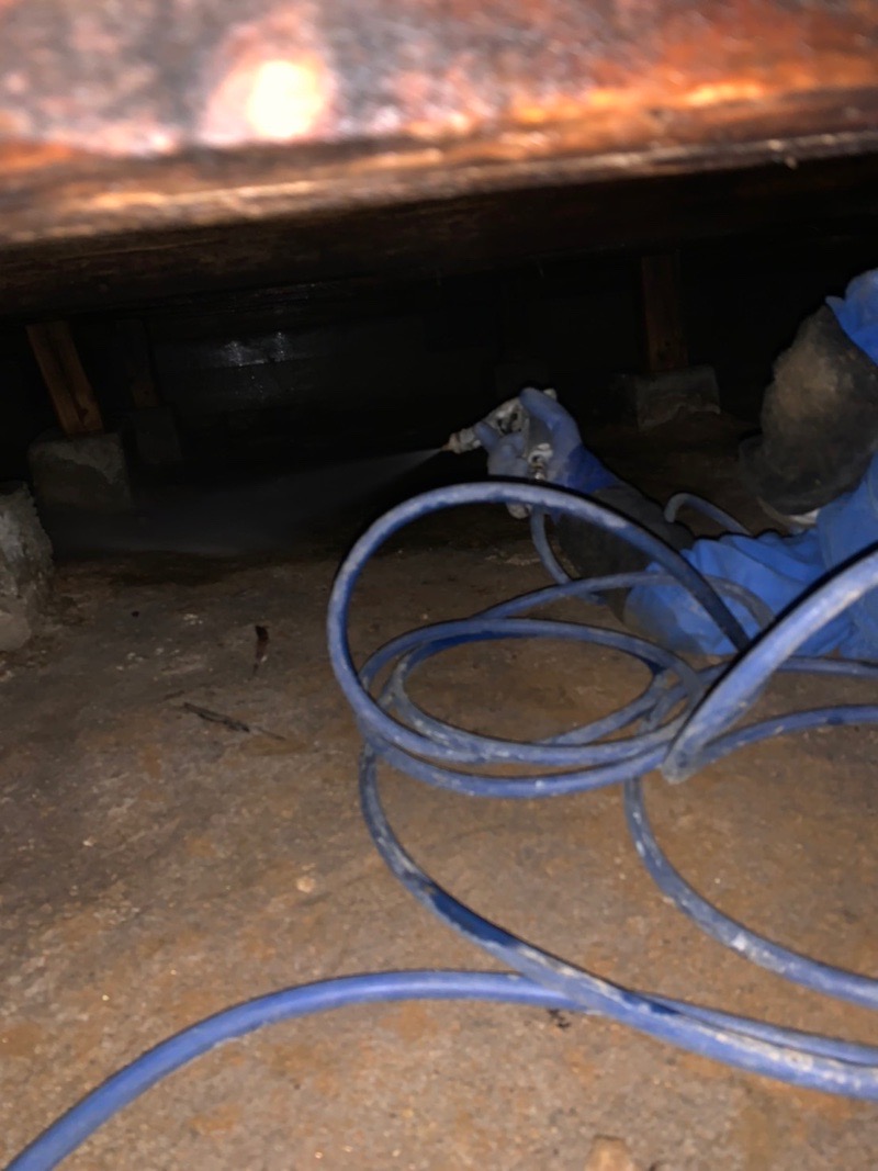 調査が終わり、これより駆除、予防のため液体の散布を開始します。弊社では、人にもペットにも安全で