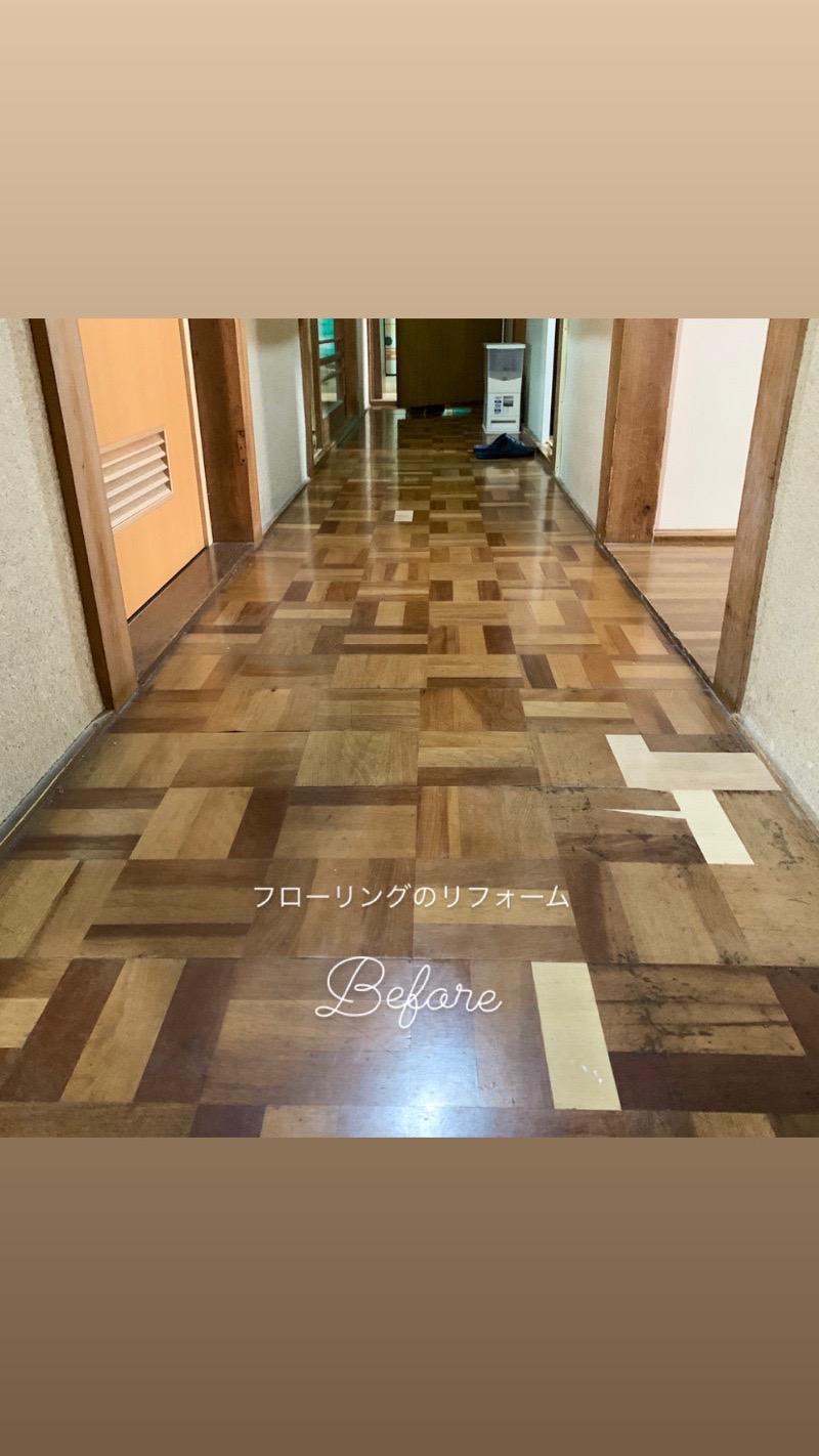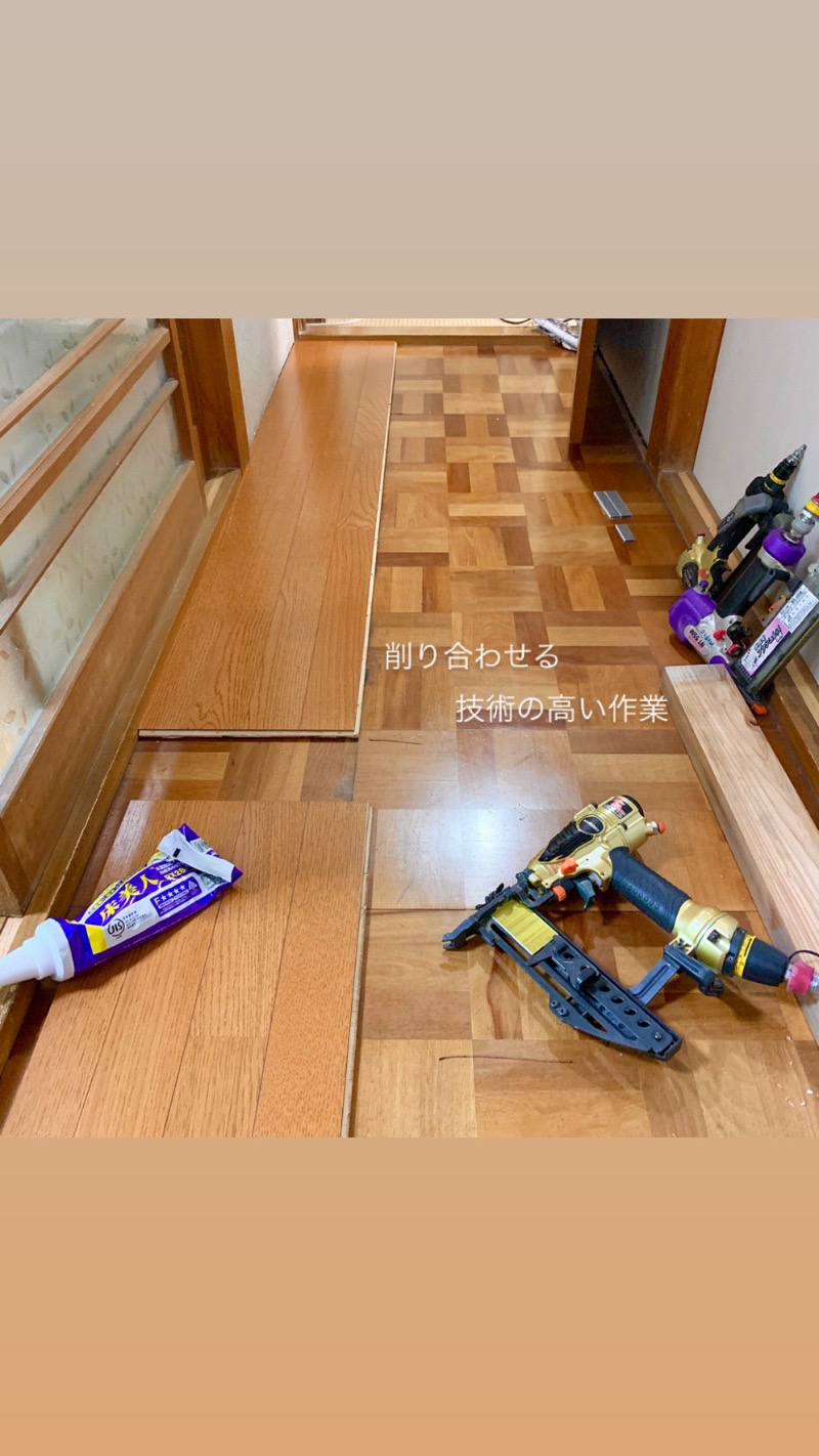 敷居の作業後は、ぶよぶよになった廊下の床のリフォームへと移ります。