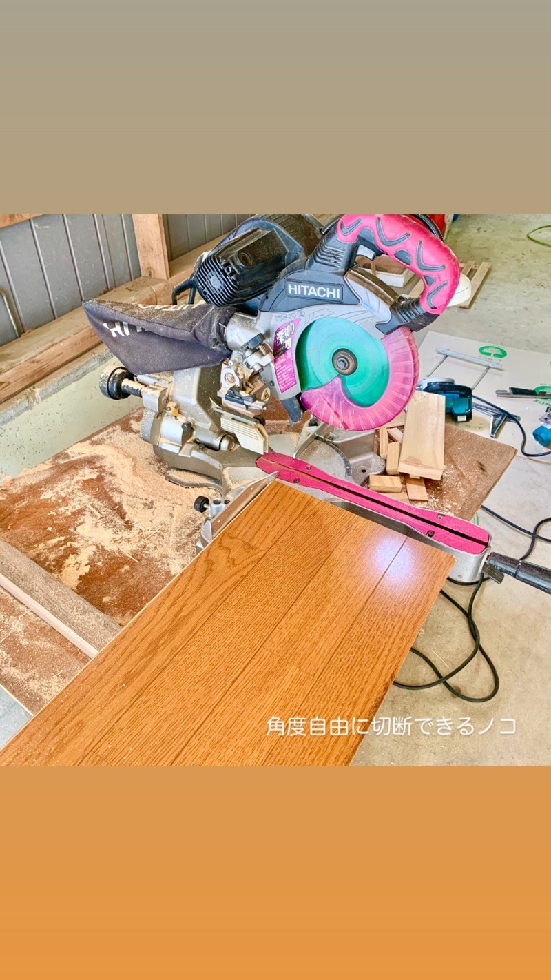これは卓上スライド丸鋸といい、角度自在に材木の小口を真っ直ぐ切断することが可能となります。
