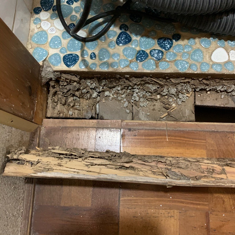 白蟻の影響でトイレの敷居がボロボロになっていたこちらのお宅