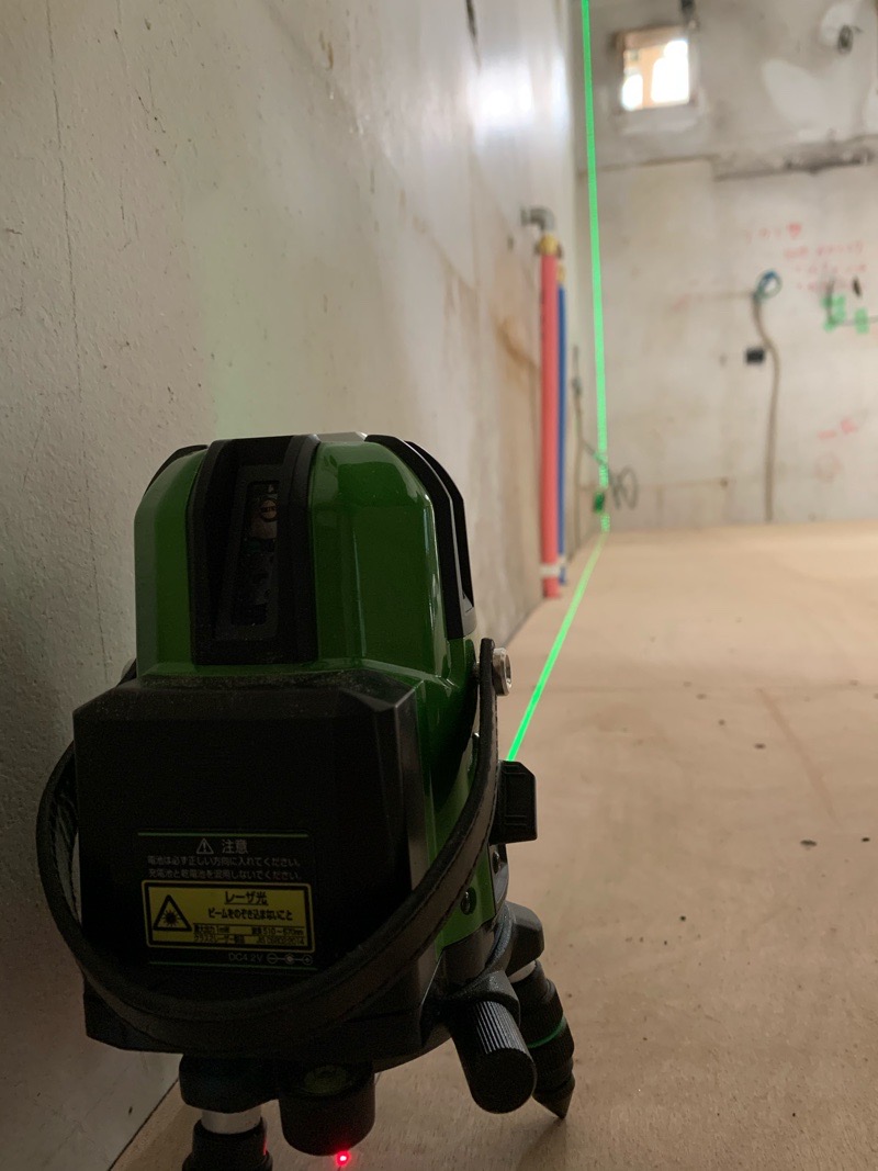 次は、壁と天井の工事へと移っていきます。そこで登場する機械が「レーザー」という物。昨年新調した新人です