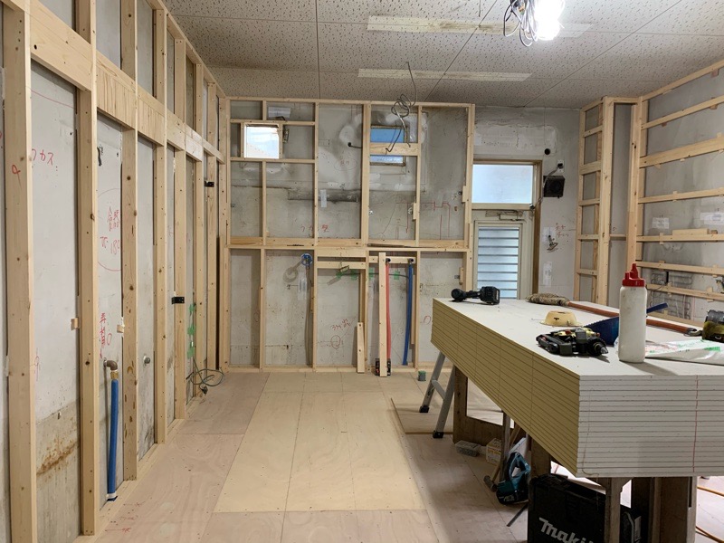 なんとなく部屋の雰囲気が感じれるようになってきます。水道・電気・ガス類の仕込み作業もこのころには