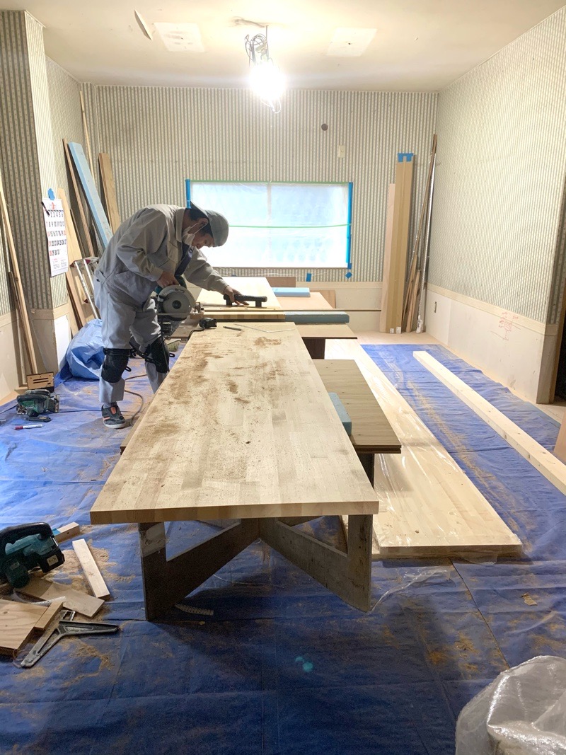 板の表面にはウレタン塗装をし、汚れ対策と強度upをはかりました。塗装は私、森尾がいたしました。
