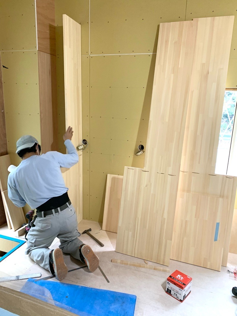 弊社の嶋さんは昔、家具屋で働いていた経験も有り目を輝かせながら造作に取り組んでくれます